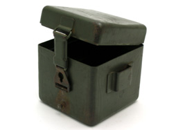 MG42及び光学機器共用、ダーク・グリーン色、留金のベロの欠品、蓋の若干の凹凸は有りますが、内部部品は残っておりますので、お値打ちな逸品です。 「beh」(Ernst Leitz GmbH社)の刻印、アムト刻印有り。 |