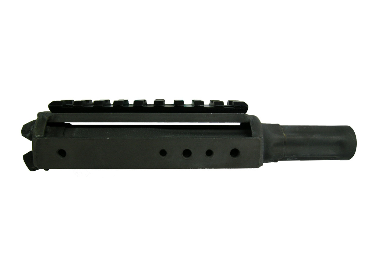 | AK用RASはアッパー・ハンドガード(ガス・チューブ部分)も兼用していますので、アッパー・ハンドガードを取り外せる品に限ります。 側面に追加レール用のネジ穴があるので、後日オプションを取り付ける事も可能です。 |
