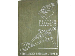 125mmx173mmのハード・カバー。 表紙に「Mortaio D’Assalto Brixia Mod.35,Metallurgica Bresciana Tempini」のタイトルがあります。 1936年発行。 全59ページの内写真17ページあり。 ブレキシア迫撃自体の現存数が少なく、そのマニュアルは非常に珍しい品です。