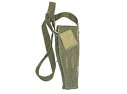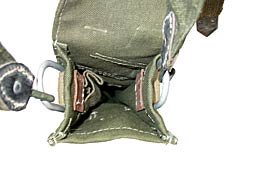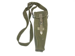非常に珍しいダーク・グリーン・キャンバス製、雑嚢スリング付きで裏面に刻印がありますが判読は不能です。
