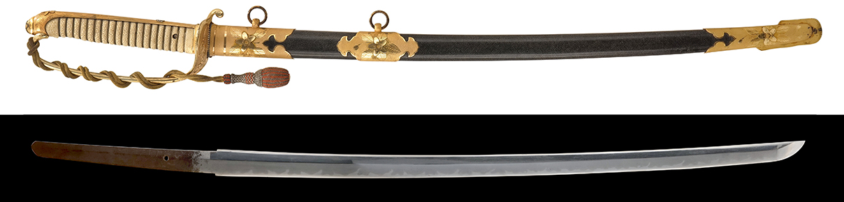 海軍士官大正三年制(旧型)軍刀 戦艦伊勢航海長 海軍大佐 城野喬 所持品 (在銘: 因幡山◯藤原忠明、明治三年八月吉辰) |
