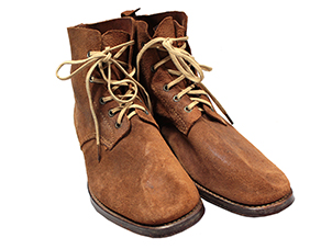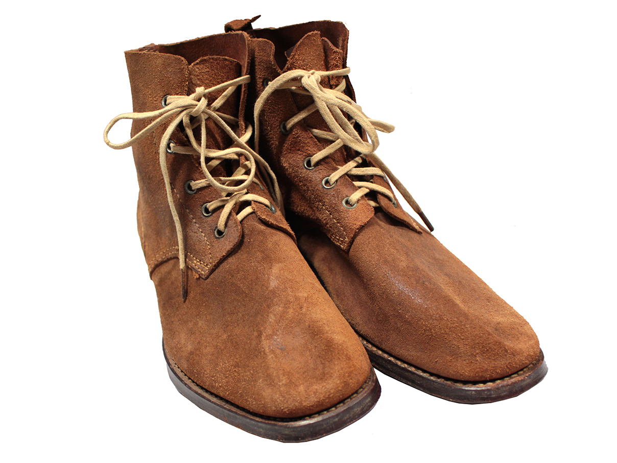 日本陸軍下士官兵用編上靴です。 靴裏には「昭五式」「亜靴」の刻印や検品した人物の印が鮮明に確認できます。 所々に経年感は見られるものの、全体に未使用と思われるほど程度の良い美品で靴裏にはびっしりと鉄鋲が打たれています。 昭和15年製と戦前の品の為、戦中の品と比べると材質も良く、仕上げも丁寧に感じられます。 靴の横には11文と打刻されており、断定はできませんが26cm位の方なら履くことが出来そうです。大阪店在庫品(AW)