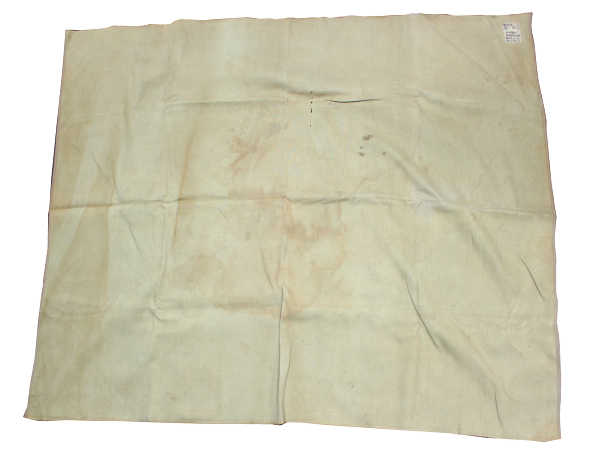日本陸軍の軍用毛布です、下士官兵に支給され行軍中等には背嚢に縛着して携行しました。 厚手のカーキ色の生地で経年による擦れ染みが見られ、小穴も確認でき起毛部分が剥げているようにも見受けられます。 使用者と思われる名が書かれた検印布の検印は薄れている為に判読は困難です、また毛布に押された星章も確認できません。 先に述べましたように所々に経年感使用感は見られますが大きな破れ等は見られません。 サイズは縦約185cm×縦約152cm程です。