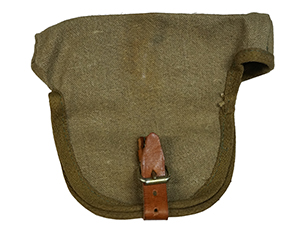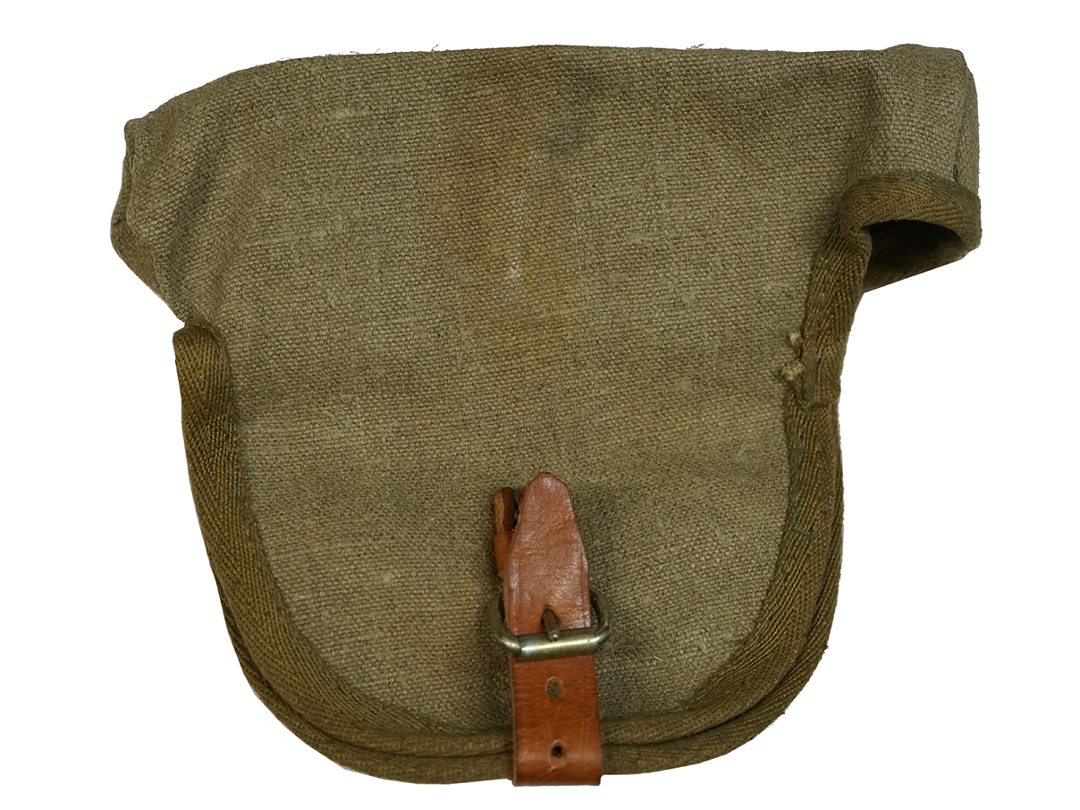 経年による褪色、部分的な解れが散見されますが全体的にしっかりとしている印象です。革製のストラップは外れてしまったものを後から縫い付けたと思われます。