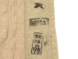 内側には「大、昭19、本」などの検印が押されています。 樹脂製のボタンは全て完全です。 擦れ退色など経年感は見られますが未使用と思われる、全体に良好な状態の品です。