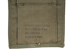 背面には「POCKET AMMUNITION MAGAZINE SMG M3」「DSA 100-1614 8465-577-4915 -2-」のスタンプが押印されています。