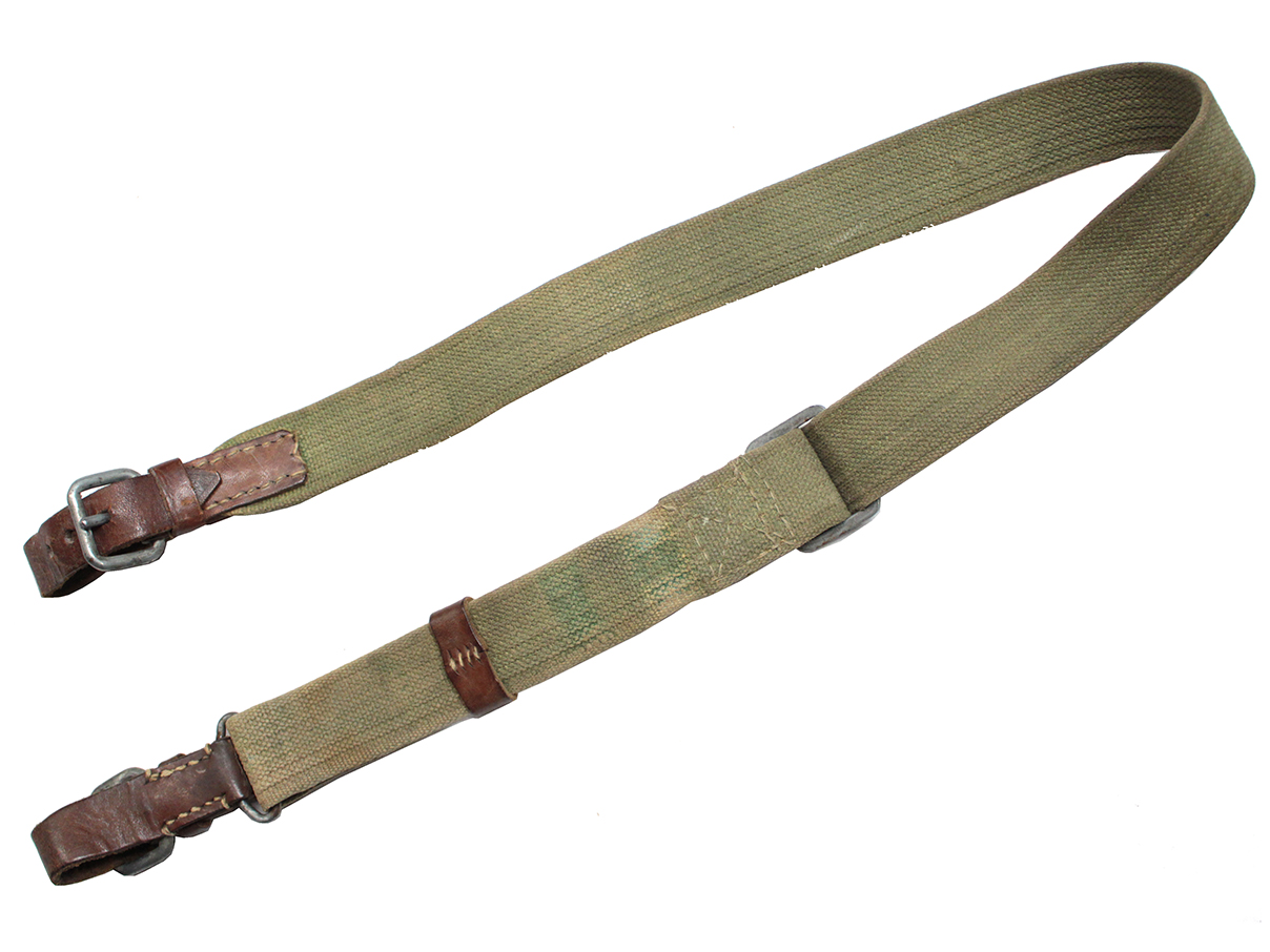 外観はAK用のスリングに酷似していますが、革製ベルト部分の幅が広くなっています。 所々に擦れや汚れなどの経年感は見られますがしっかりとした品です。