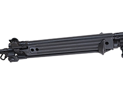 ベルギー FN社のFAL自動小銃を元に、オーストリアで改良・開発された自動小銃で、1958年に行われたトライアルでスペインのセトメ自動小銃及び米国のAR10自動小銃を破ってオーストリア陸軍に制式採用となりました。 FAL自動小銃からの主な変更点として、プレス製のメタル・ハンドガード及び折り畳み式の二脚が装備されているのが特徴です。 このため外観が西ドイツのGew.1自動小銃に酷似していますが、銃口部にチューブ径22mmのグレネード・ランチャーとして機能するサプレッサーが装備されている点が異なります。 このサプレッサーにはSTRIMやMECARといったライフル・グレネードを装着する事が可能でした。 また、このサプレッサーの先端には4本の溝が設けられており、内部にはワイヤーを捉えるためのネジが切られています。 このサプレッサー先端部分でワイヤーを捉えて銃を発射する事により、ワイヤー・カッターとして使用する事も可能となっています。 StG.58自動小銃の内、最初に納入された2万挺はベルギーのFN社で生産された品を輸入した物でしたが、その後オーストリアのステアー・ダイムラー・プフ社でライセンス生産が行われました。 初期生産品の銃床は木製の物が装備されていましたが、後に黒色の樹脂製銃床へと変更されています。 また、オーストリアで生産された品のガス・プラグには、取り外しボタンにL字型の板が取り付けられている物も見られます。 尚、StG.58自動小銃にはGew.1自動小銃と同様に銃剣は用意されていませんでした。 StG.58自動小銃は、1977年に後継のステアーAUG自動小銃が制式採用された後も、1980年代半ば頃まで多くの部隊で使用された他、現在でもオーストリア軍の訓練用小銃として使用されています。 (KK)