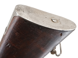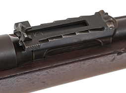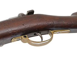 本品は全体に適度な時代が付いた良い雰囲気となっており、銃身や機関部といった金属部は、若干の打ち傷や擦れ、経年による褪色の他、一部表面錆痕は見られるものの、目立った欠損等は見られず、概ねしっかりとした状態が保たれています。 白磨きのボルトについても、やや時代錆は見られるものの、目立った朽ち込み等は見られません。 真鍮製のトリガー・ガードについてもやや打ち傷は見られますが、目立った腐食などは見られず、適度な時代が付いています。 木製銃床については、やや打ち傷や線傷の他、リア・バンド後方の銃床右側面の角などに一部時代の付いた欠けが見受けられ、アッパー・タング後方にあまり目立たないヘアライン・クラックが見られますが、それ以外には大きな破損等は見られず、オリジナルの仕上げも比較的残っています。 バット・ストック右側面には手書きにより17と読める数字が書かれています。 傷み易いバット・プレートについても、若干の時代錆や表面錆痕は見られるものの、目立った変形等は見られず、銃床への取り付けもがたつきもなくしっかりとしています。 リア・サイトの起倒・調整は問題なく行う事が可能です。 クリーニング・ロッドが付属いたします。