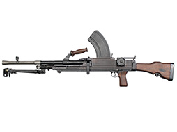 第二次世界大戦で使用された英軍の主要軽機関銃です。 第一次世界大戦後の1920年代、英軍はそれまでの主力軽機関銃であったルイス軽機関銃に代わる新たな軽機関銃のトライアルを開始しました。 1930年代に入るとチェコ製のZB Vz.26の改良型であるZB Vz.27軽機関銃 (後に更なる改良型のZB Vz.30軽機関銃) を新たに候補に加えてトライアルが続けられ、最終的にはこのZB系軽機関銃に改良を加えた物がブレン軽機関銃 (ブレンガン) として英軍に制式採用されました。 ブレン (BREN) の名称は、チェコのブルーノ (Brno) 造兵廠と英国のエンフィールド (Enfield) 造兵廠の名称を組み合わせた物です。 ブレン軽機関銃では.303ブリティッシュ弾を使用する事から、マガジンはバナナ型の形状に変更されています。