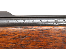 本個体は三八式騎兵銃 初期型の東京砲兵工廠 (小石川) 製です。 東京砲兵工廠では1923年 (大正12年) の関東大震災により甚大な被害を受け、一部機能を残しその役目を小倉工廠に移すまで生産されました。 初期型の東京砲兵工廠 (小石川) 製は、非常に丁寧な仕上がりで、検査刻印が多数打刻されているのが特徴的です。 本品の機関部左側面にはシリアルNo.123426に加えて東京砲兵工廠製を示す刻印が入っています。 尚、シリーズ刻印は入っていません。 薬室上面の菊花紋章及び「三八式」の刻印ははっきりと残っています。