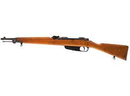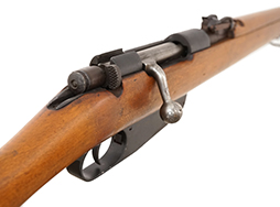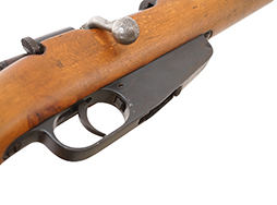 カルカノ M1891 小銃は、ベテェーリ小銃の後継として1891年3月に王令で制式決定され、1892年3月29日に軍で正式採用、同年5月から部隊配備が開始された、イタリア軍初の無煙火薬を使用する制式小銃で、トリノ陸軍工廠でサルヴァトーレ・カルカノ技師によって開発されました。 使用弾薬はベテェーリ小銃用の10,4mm弾に比べて大幅に小口径化された6,5mm×52 マンリッカー・カルカノ弾で、小口径化に伴い歩兵が携行可能な弾薬量が増大しました。 機関部の構造はドイツのGew.88 小銃の影響を強く受けたコックオン・オープニング方式で、弾倉はエンブロック・クリップを使用するマンリッカー方式を改良した物が用いられています。 クリップは上下対称のデザインとなっており、上下どちらの向きでも装填が可能です。 また、クリップから最終弾が引き抜かれると、空のクリップがマガジン・ハウジングの下部から排出される構造となっていました。 ボルト・スリーブにはファイアリング・ピン及びボルトをロックする安全装置が設けられています。 M1891 騎兵銃は第一次世界大戦時のイタリア軍の主力騎兵銃で、銃を背負った際に他の装具に引っ掛からない様に、ボルト・ハンドルがストック方向に折り曲げてあります。