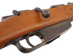 カルカノ M1891 小銃は、ベテェーリ小銃の後継として1891年3月に王令で制式決定され、1892年3月29日に軍で正式採用、同年5月から部隊配備が開始された、イタリア軍初の無煙火薬を使用する制式小銃で、トリノ陸軍工廠でサルヴァトーレ・カルカノ技師によって開発されました。 使用弾薬はベテェーリ小銃用の10,4mm弾に比べて大幅に小口径化された6,5mm×52 マンリッカー・カルカノ弾で、小口径化に伴い歩兵が携行可能な弾薬量が増大しました。 機関部の構造はドイツのGew.88 小銃の影響を強く受けたコックオン・オープニング方式で、弾倉はエンブロック・クリップを使用するマンリッカー方式を改良した物が用いられています。 クリップは上下対称のデザインとなっており、上下どちらの向きでも装填が可能です。 また、クリップから最終弾が引き抜かれると、空のクリップがマガジン・ハウジングの下部から排出される構造となっていました。 ボルト・スリーブにはファイアリング・ピン及びボルトをロックする安全装置が設けられています。 M1891 騎兵銃は第一次世界大戦時のイタリア軍の主力騎兵銃で、銃を背負った際に他の装具に引っ掛からない様に、ボルト・ハンドルがストック方向に折り曲げてあります。