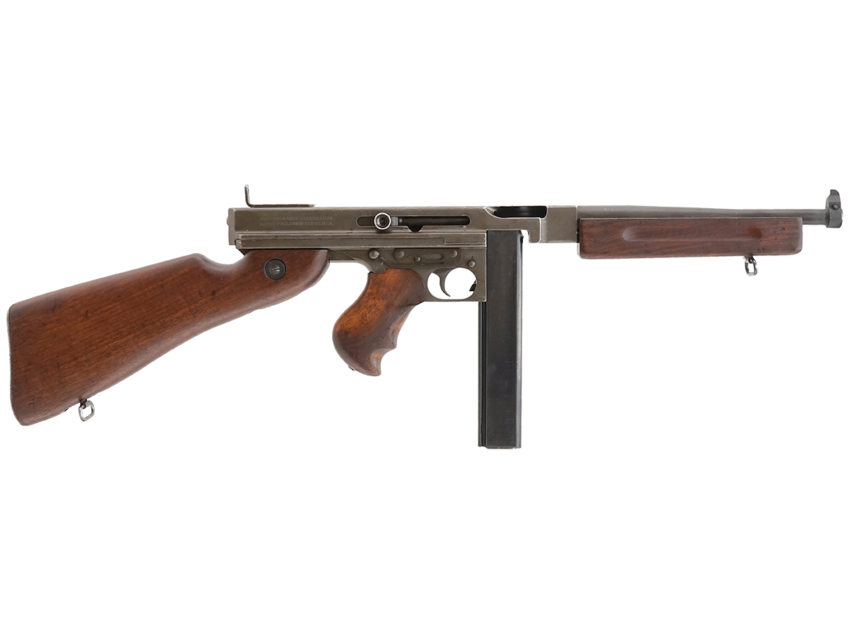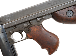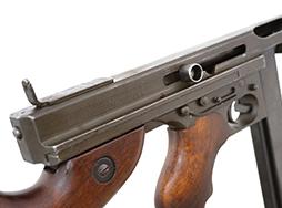 トンプソンM1928A1短機関銃の製造コストを下げるために各部を改良したトンプソンM1短機関銃に対して、さらに撃針の固定化等の追加改良を加えたモデルです。M1A1ではリア・サイトの変形を防止する為、三角形のリア・サイト・ガードが標準装備されるようになりました。また、元々はM1として製造された物の中にも、後にM1A1に準じた改修を受けてA1刻印を追加された個体も存在します。