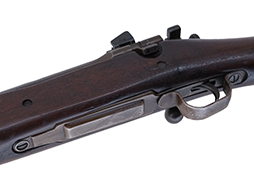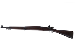 1903年にアメリカ軍制式となった、第一次世界大戦時の主力小銃です。 米西戦争の際に使用していた.30-40 クラグ・ヨルゲンセン・ライフルに対し、敵側のスペイン軍が使用するモーゼル系ボルト・アクション・ライフルの弾薬や操作性の優秀性を痛感した事から、モーゼル M1898小銃を基に開発されたと言われています。 しかしながら、コーン・タイプのボルト・ヘッドやボルト・ストップ等に独自の設計がなされています。 これによって米軍はようやく世界水準に達したボルト・アクション・ライフルを手にする事になりました。 使用弾薬の.30-06弾 (米軍ではM1/M2ボール) は現在でも猟用で使用されているほどの傑作カートリッジで、後に採用されたM1ガーランド小銃でも採用されています。 尚、実際には.1903年に.30-03弾がM1903小銃と共に採用されたのですが1906年に使用弾薬が.30-06弾へと変更されました。