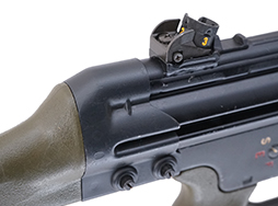 本品のハンドガードは樹脂製のワイド・タイプで、バット・ストック及びグリップについてはOD色の樹脂製の物が装備されています。 尚、ニ脚は付属しません。