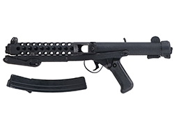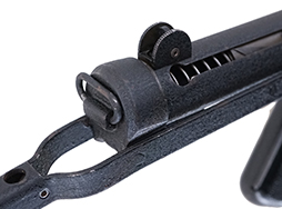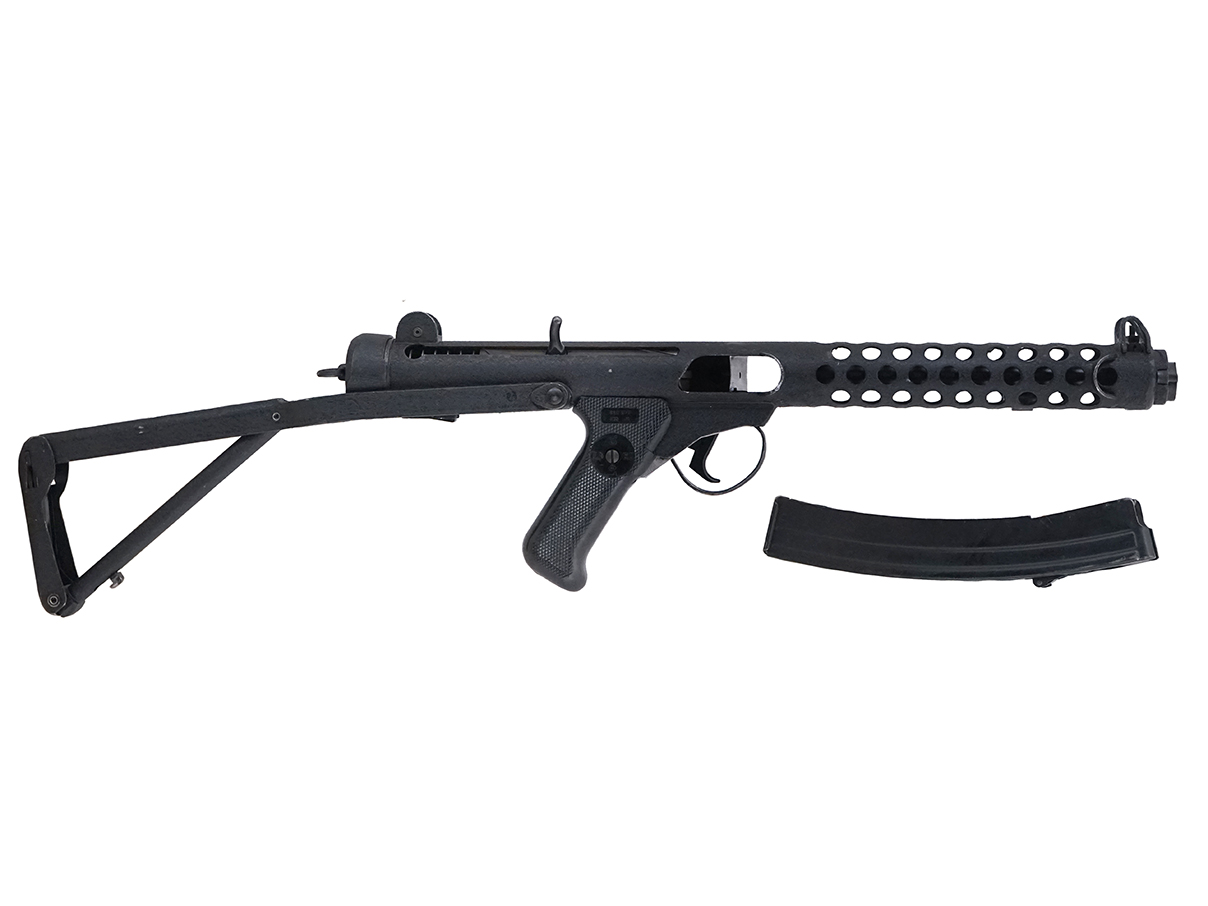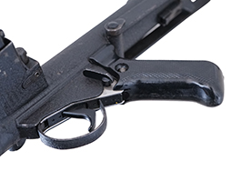 独特の折り畳みシステムを持つフォールディング・ストックを始めとした各部の形状は個性的で、戦後を代表する短機関銃の一つとして、弊社でも人気の高い銃の一つです。