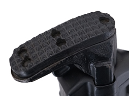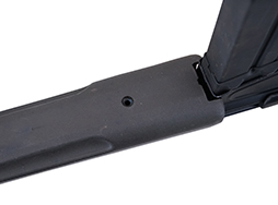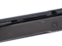 本品は全体に若干の使用感は見られるものの、目立った破損等は見受けられず概ねしっかりとした状態が保たれています。 レシーバーや銃身については若干の擦れや小傷は見受けらますが、現状目立った変形や欠損等は見受けられません。 アッパー・レシーバーは黒の焼付塗装で、グリップ・フレームはパーカー仕上げとなっており、それぞれ表面処理がしっかりと残っています。 樹脂製のハンドガードやグリップについても、やや打ち傷や擦れが見受けられる以外は大きな破損や欠損等も見られず、しっかりとした状態が保たれています。 ストックがリトラクタブル・ストックに交換されており、本体同様に適度な使用感がみられます。 キャッチのかかりはしっかりとしており、伸縮はスムーズでがたつきなく固定されます。