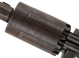 作動については現状は完全で、2本のハンマーを起こした際のハーフ・コック及びフル・コックはしっかりと掛かり、フル・コック状態でトリガーを途中まで引くと右側のハンマー、完全に引き切ると左側のハンマーが順番に落ちます。 また、シリンダーについてもハンマーの操作に合わせて正常に回転します。 シリンダーの前後の遊びについても十分許容レベルです。 尚、本品は構造上、過度な操作や頻繁な分解・組み立てを行う事により、作動に悪影響を及ぼす恐れがございますので、取り扱いには十分ご注意ください。 銃身内は銃口から銃身後部まで完全に抜けて (通って) おり、若干の表面錆は見られるものの、ライフリングも比較的はっきりと確認出来ます。 シリンダーのパーカッション・ニップルについては、やや時代錆や若干の打ち傷が見られるものの、目立った欠けなどは見受けられず、比較的良好な状態が保たれています。