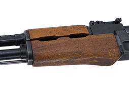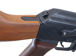 AK-47はソ連の他、旧共産圏の各国でもライセンス生産が行われ、ハンガリーではAK-47 III型のライセンス生産品がAK-55として制式となりました。 ハンガリーのFÉG (Fegyver- és Gázkészülékgyár ※当時の社名はLámpagyár) では1957年からAK-55の生産準備が開始され、1959年に最初の製品が出荷されました。 AK-55の削り出しレシーバーの生産はDanuvia Gépgyárが下請けで生産した他、その他の複雑な工程についても小規模な銃器会社が下請けとして行いました。 AK-55はセレクターが「∞ (連射) - 1 (単発)」の表記となっており、リア・サイトの最短戦闘距離表示が「A」で表示されているのが特徴です。 また、シリアルNo.はレシーバー左側面の削り出しにより窪んだ部分に打刻されているのも特徴ですが、刻印以外はソ連製AK-47 III型とほぼ同仕様となっています。 ハンドガードやグリップ、バット・ストックの木部はブナの単材製となっており、グリップには滑り止めのチェッカリングが施されています。 削り出しレシーバーを持つAK-55の生産は1962年まで行われ、1963年以降はレシーバーをプレス製としたAKMタイプのAKM-63やAK-63 (AMM) の生産に置き換えられました。 (KK Updated)