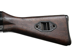 本品は全体にやや使用感は見られるものの、目立った破損等は見受けられず概ねしっかりとした状態が保たれています。 レシーバーや銃身については若干の擦れや小傷が見受けられる他、レシーバーの溝に無可動加工による溶接痕が見られますが、現状目立った変形や欠損等は見受けられません。 木製のハンドガードやバット・ストック、樹脂製グリップについても、やや打ち傷や擦れ、若干の摩耗が見受けられるものの、大きな破損や欠損等は見られず、概ねしっかりとした状態が保たれています。 バット・プレートにはやや打ち傷や若干の摩耗が見られますが、現状大きな破損等は見られず、滑り止めの溝も良好に残っています。