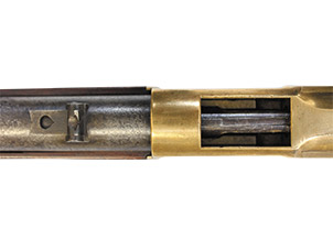 M1866には銃身長が27インチのマスケット、24インチのライフル、20インチのカービンがありました。 本品はそのカービン(騎兵銃)モデルです。 特にフレームの左側面に鞍(サドル)に銃を固定するリング(環)が付いているので「サドル・リング・カービン (Saddle Ring Carbine)」と呼ばれました。