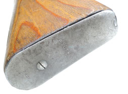 本品の機関部や銃身といった金属部については、やや打ち傷や擦れ、経年による褪色や若干の表面錆痕が見られるものの、目立った欠損等は見られず、オリジナルのブルー仕上げも比較的残っています。 木製の銃床についても、やや打ち傷や線傷等が見受けられますが、現状目立った破損や欠損等は見られず、各部の取り付けもがたつきもなくしっかりとしています。 フロント・バンド付近の銃床左側面に木部表面が僅かに削れている箇所が見られますが、大きく外観を損ねるものではありません。 傷み易いバット・プレートについては、やや打ち傷や擦れ、表面錆痕が見られますが、大きな変形などは見られず、銃床への取り付けもがたつきもなくしっかりとしています。 リア・サイトの調整については問題なく行う事が可能です。 弾倉内にはフォロワー及びスプリングが入っています。 フロント・サイトにはサイト・フードが取り付けられています。 クリーニング・ロッドは付属致しません。