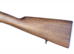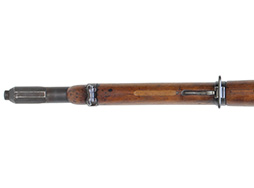 木部は、仕上げの艶を鮮やかに残したしっとりした状態です。 やはり僅かな小傷は見受けられますが、経年をふまえれば申し分の無いコンディションです。 リア・バンドとフロント・バンドの中間に溝を埋めた跡がありますが、これは歩兵銃からコンバートした際のもので、オリジナル性を損なうものではありません。 リア・サイト・リーフはスムーズに動作しロックもしっかりと掛かります。 セーフティも可動し、セーフティ・ポジションでトリガーをロックします。 トリガー・テンションのある、ボルトが完全に閉鎖した状態で固定された旧加工品です。 (YS)