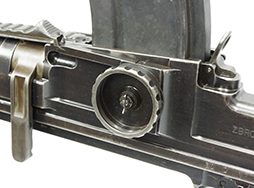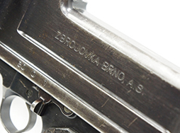 本品の機関部左側面にはチェコのZBで製造された事を表す「ZBROJOVKA BRNO, A.S.」の刻印が入っています。 セレクター表示については、「30(連射)」、「0(安全位置)」、「1(単射)」の数字表記となっています。 また、機関部後端の上面にはシリアルNo.が打刻されています。