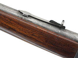 本品はシリアルNo.1390448から1946年に製造された品である事が窺えます。 リア・サイトの取付基部の銃身左側には「MADE IN NEW HAVEN CONN. U.S. OF AMERICA - WINCHESTER PROOF STEEL - WINCHESTER - TRADE MARK - MODEL 94-30 W.C.F. -」の刻印が入っています。 ハンドガード取付基部付近のレシーバー下面に打刻されたシリアルNo.は一部に削れが見られますが、判読自体は可能です。