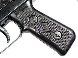 本品のレシーバー上部にはシリアルNo.の他、大きな「C」の文字及び1945年製である事を示す「1945」の刻印が手彫りにより入っています。 またグリップにもロシア製を示す菱形の中にCの文字が入ったマークが見られます。 アッパー・レシーバー、ロア・レシーバーとボルト・ハンドル、銃身のシリアルNo.はマッチしています。