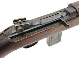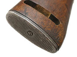 本品の機関部等の金属部は、若干の小傷や擦れが見受けられるものの、全体に大きな欠損や朽ち込み等は見受けられず、パーカーの表面仕上げも大部分に残った概ね良好な状態が保たれています。 銃身については一部に経年による褪色の他、やや仕上げが薄くなって金属の地肌が表れている箇所が見受けられるものの、こちらも大きな欠損等は見られません。 木製銃床についてはやや打ち傷や線傷が散見されるものの、大きな破損や欠損等は見受けられず、各部の取り付けにもガタつき等は見られません。 傷み易いバット・プレートについてはやや打ち傷や表面錆の他、角の部分などに仕上げが落ちて金属の地肌が表れている箇所が見受けられますが、大きな変形や朽ち込み等は見られず、比較的しっかりとした状態が保たれています。 銃床とバット・プレートの間に若干の隙間が見られますが、取り付け自体は比較的しっかりとしており、ガタつき等は見られません。 リア・サイトの調整やマガジンの着脱については問題なく行う事が可能です。 付属のマガジンは「(SP)」の刻印が入った15連タイプで、やや小傷や擦れは見受けられるものの、大きな凹みや変形等は見られず、概ね良好な状態が保たれています。 マガジン・スプリングは入っています。 セーフティの操作についても問題なく、安全位置でトリガーがロックされます。
