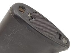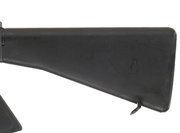 本品は未使用コンディションの物を無可動加工した品で、金属部はやや保管上の打ち傷や擦れ等は見受けられるものの、目立った欠損等は見受けられず、良好な状態が保たれています。 ハンドガードやグリップ、バット・ストックについても、若干の小傷や擦れは見受けられるものの、こちらも目立った破損や欠損等は見られず、各部のガタつき等も見られません。 バット・プレートには、M16A1の持病である若干のひびが発生していますが、大きな欠けには至っておりません。 フロント・スイベルの樹脂コーティングは一部に剥落が見受けられます。 フルオート・シアが取り外されていますので、シア・ピンが固定されていません。 お客様がご購入後にボンド等で固定して下さい。 但し、ボルト・キャリアが後退した加工の為、シア・ピンを固定すると、アッパーとロア・レシーバ―の分割が非常に難しくなってしまいます。 リア・サイトの調整やマガジンの着脱、ストック内コンパートメントの蓋の開閉については問題なく行う事が可能です。 セレクターは可動しますが、トリガーとの連動などはありません。 コルト社製オリジナルのアルミ製30連マガジンが付属します。 マガジンは本体に比べてやや小傷や擦れが目立ちますが、大きな凹みや変形等は見受けられません。 尚、マガジン・スプリングは入っていません。