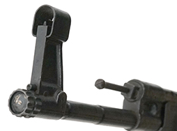 リア・サイトの調整やマガジンの着脱については問題なく行う事が可能です。 マガジンは装着時にやや遊びが見られますが、固定自体はしっかりとしています。 付属のマガジンには「MP44」のモデル名刻印及び「qnw」のメーカー・コードの他、アムト刻印が確認出来ます。 また、マガジン・ボトム・プレートには「qlx」及び「C.H.N.」の刻印が入っています。 マガジンはやや小傷や擦れ、経年による褪色の他、表面錆痕が見受けられますが、目立った凹みや変形等は見られず、概ねしっかりとした状態が保たれています。 セーフティ・レバーやセレクター・ボタンの切り替えについても問題なく行う事が可能で、セーフティは安全位置でトリガーがロックされます。