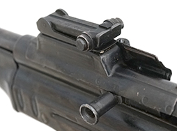 本品の金属部は全体に適度な使用感が見受けられ、やや打ち傷や擦れ、経年による褪色の他、若干の表面錆等が見られるものの、目立った欠損や変形等は見られず、総じてしっかりとした状態が保たれています。 木製バット・ストックについてもやや打ち傷や線傷が見られるものの、大きな破損や欠損等は見受けられず、比較的良好な状態が保たれています。 傷み易い肩当て部についても、滑り止めの溝が良好に残っています。 また、ストック後部上面のコンパートメントの蓋の開閉についても、スプリングのテンションがしっかりと効いています。 バット・ストックのレシーバーへの取り付けは、若干の遊びは見られるものの、十分許容レベルです。 木製のグリップ・パネルにもやや打ち傷や線傷、角の部分の僅かな欠けが見られるものの、大きな破損等は見られず、本体への取り付けについてもがたつき等は見られません。