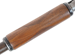 木製のフォア・エンドは全体に良好な状態ですが木製のバット・ストックについては、一部に打ち傷や線傷が見られる他、強度的には問題無いものの右側面には長さ8cm程に渡って樹脂によると思われる補修痕が見られます。 尚、こちらも強度に問題は無いもののバット・プレートに左側に2.5cm程の欠けが見受けられます。