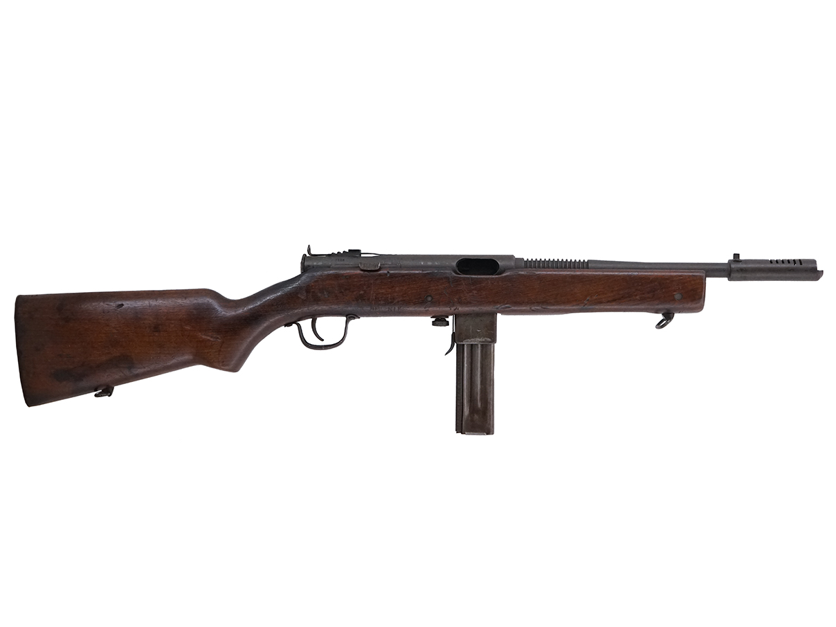第二次世界大戦中にハーリントン&リチャードソン (Harrington & Richardson、H&R) 社により製造された、.45ACP弾を使用する短機関銃です。