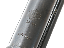 本品のレシーバー上面にはシリアルNo.の他、ユーゴスラビア社会主義連邦共和国の国章及び「M56」のモデル名刻印などが入っています。 シリアルNo.はアッパー・レシーバーとグリップ・フレームでマッチしています。