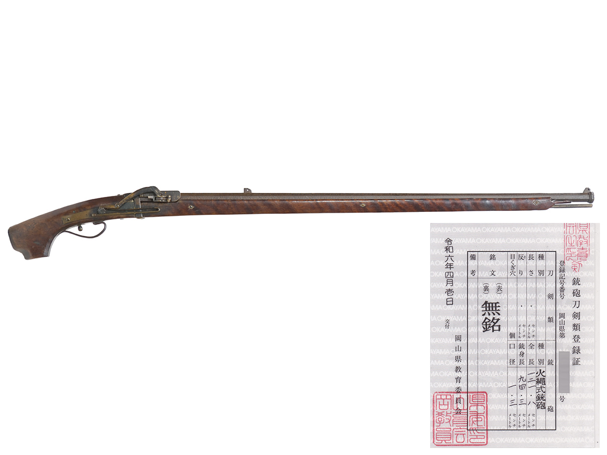 昭和47年11月29日に東京都教育委員会で交付された銃砲刀剣類登録証が付いた、可動する実物の古式銃です。 無可動実銃ではありません。