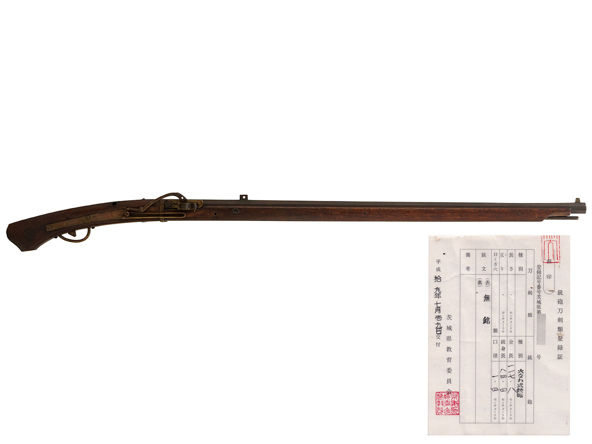 平成19年7月19日に茨城県教育委員会によって交付された銃砲刀剣類登録証が付いた完全可動する実物の古式銃です。 無可動実銃ではありません。