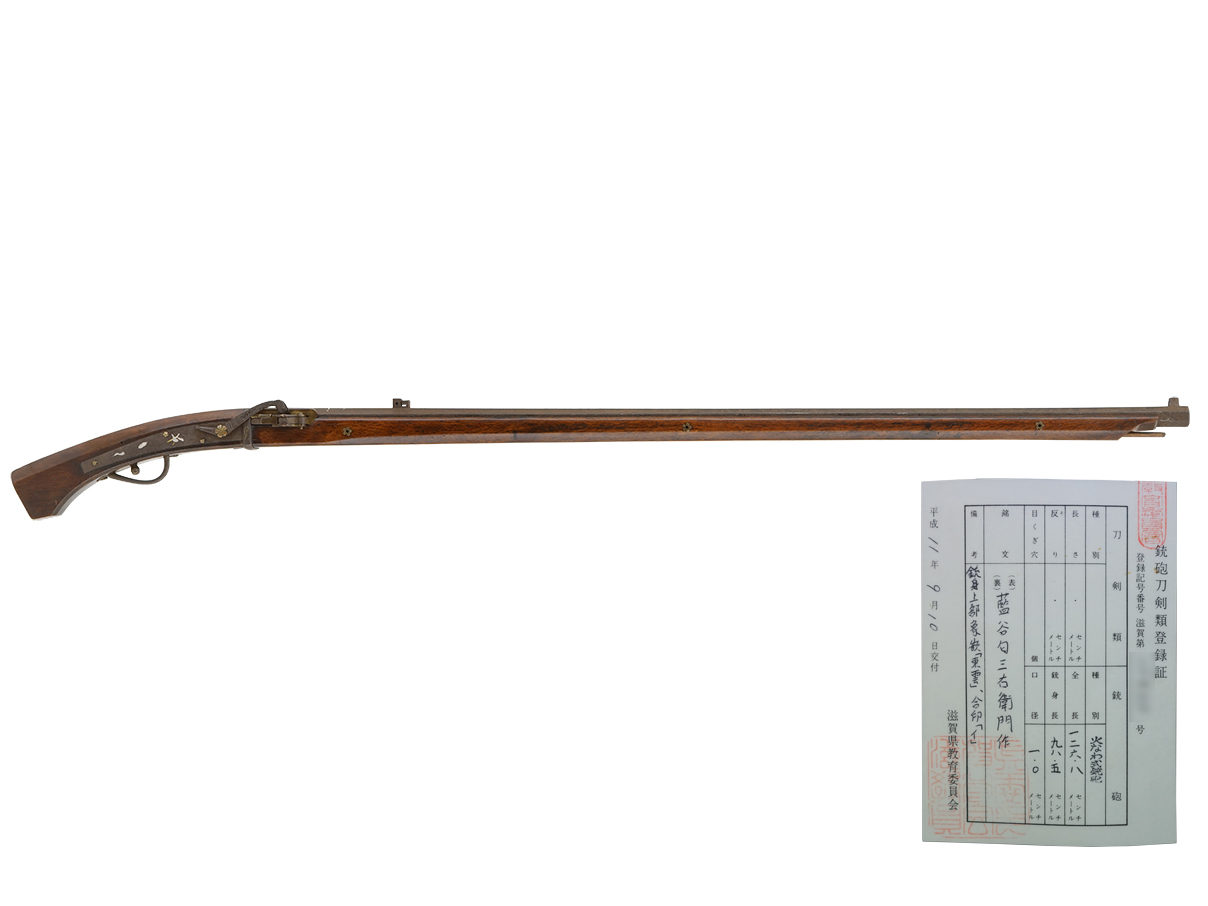 年月日 県教育委員会によって交付された銃砲刀剣類登録証が付いた完全可動する実物の古式銃です。 無可動実銃ではありません。