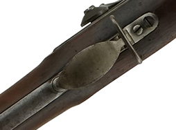 本品のロック・プレートには銃本体を製造したパーカーズ・スノー社を示す「PARKER'S SNOW & CO. MERIDEN, CONN.」の刻印の他、翼を広げた鷲及び「U.S.」の刻印が入っています。 ブリーチ・ブロック上面には「W.H. & G.W. MILLER PATENT MAY 23.1865」のパテント刻印の他、メリデン製造会社を示す「MERIDEN MAN'FG. CO. MERIDEN. CONN.」のメーカー刻印がはっきりと確認出来ます。 本品のロック・プレートには「1863」の刻印が打刻されている事から、1863年末までに納品された約2,000挺のうちの1挺か、もしくは1864年1月に納入された1,000挺のうちの1挺である可能性が高いと考えられます。 尚、同社はそれ以前にも銃の製造経験を持っており、ジェームズ・マルホランド (James Mulholland) との下請け契約を通じて、1863年7月から10月にかけてM1861 ライフル・マスケットを5,502挺供給していました。 そのため、本銃のベースとなったM1861 マスケットは、マルホランド社が下請けとして製造した銃にパーカーズ・スノー社が自社の刻印を打刻し、1863年10月以前に出荷された品である可能性も考えられます。