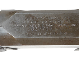 本品はニューイングランド・スモール・アームズ (NESA) で当初からBAR M1918A2として製造された品で、レシーバー上面にはシリアルNo.の他、「BROWNING AUTOMATIC RIFLE U.S. CAL 30 M1918 A2」のモデル名刻印及び「MAN'F'D BY N.E. SMALL ARMS CORP.」のメーカー刻印が打刻されています。 レシーバー上面にはそのほかにも米国武器省 (Ordnance Department) の検査刻印である「クロス・キャノン」刻印及び「P」のプルーフ刻印などが入っています。 バット・ストックは樹脂製となっています。 また、付属の二脚は脚の長さの調整ノブが上部に設けられている1944年5月に採用された後期タイプとなっています。 銃身前部上面にはフレーミング・ボムの刻印と共にニューイングランド・スモール・アームズ社を示す「NE-7」のサブコントラクター刻印の他、製造時期を示す1-44の刻印が入っています。 その他、リア・サイト・ガードには「NE 5-I」及び「C-64231」、ニ脚基部に「NE8-B 147337-A」、ニ脚の右脚に「B 7312235 N」、右脚の石突部分に「B 7312236-1 N」、左脚に「B 7312235-NE22」や「NE1」、左脚の石突部分に「B-7312237-1」の刻印が入っています。 トリガー・ガード・グループは、マガジン・ガイドが一体式となったタイプで、トリガー・ガード下面に「D35470-7 NE6」の刻印が見られます。 バット・プレートはヒンジ式の蓋 (バット・トラップ) が省略された1942年10月に採用されたタイプとなっています。