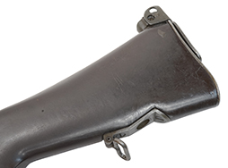 本品は全体にやや使用感が見受けられ、金属部は打ち傷や擦れの他、角の部分などに仕上げが若干薄くなって金属の地肌が表れている箇所が見受けられますが、大きな破損や欠損、朽ち込み等は見受けられず、比較的しっかりとした状態が保たれています。 木製ハンドガードについてもやや打ち傷が目立つものの、大きな破損等はみられず、概ねしっかりとした状態が保たれています。 樹脂製のバット・ストックについては若干の擦れや打ち傷、ストック取り付け部の下部に僅かな欠けが見られるものの、ストックの本体への取り付けについてもガタつきもなくしっかりとしています。 ショルダー・レストは大きな変形は見受けられず、開閉自体は問題なく行う事が可能です。 リア・サイトの起倒・調整やセレクターの切り替え、二脚の展開・伸縮、マガジンの着脱については問題なく行う事が可能です。 付属のマガジンは一部に若干の擦れなどは見受けられるものの、状態は良好です。 尚マガジン・スプリングは入っていません。