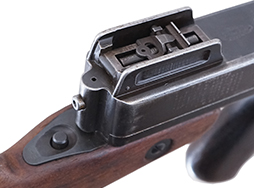 その後、トンプソンM1928A1短機関銃の製造コストを下げるために各部を改良したトンプソンM1短機関銃の他、さらに撃針の固定化等の追加改良を加えたM1A1といったモデルも製造されました。 M1A1ではリア・サイトの変形を防止する為、三角形のリア・サイト・ガードが標準装備されるようになりました。また、元々はM1として製造された物の中にも、後にM1A1に準じた改修を受けてA1刻印を追加された個体も存在します。