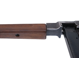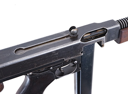 トンプソンM1928A1短機関銃は、米陸軍によってそれまで限定的に調達が行われていたM1928短機関銃を1938年に標準調達品として制式採用したモデルです。 ハンドガードが従来のバーティカル・グリップ付の物からストレート・タイプとなった他、ハンドガード及びストック下部にスリング・スイベルが追加されました。 M1928A1は米国以外にもレンドリース法に基づき各国に供給されました。