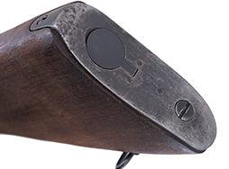 本品は全体にやや使用感が見受けられ、レシーバーや銃身といった金属部については、打ち傷や擦れ、若干の経年による褪色の他、角の部分などに仕上げが薄くなり金属の地肌が表れている箇所が見受けられるものの、全体に目立った欠損等は見られず、概ねしっかりとした状態が保たれています。 木製のハンドガード及びバット・ストックは、金属部に比べて良好な状態が保たれており、若干の打ち傷の他、バット・ストック右側面に強度に影響のないレベルのヘアライン・クラックが見られるものの、それ以外には大きな破損等は見られません。 グリップは、ハンドガードやバット・ストックに比べて使い込まれた暗い色合いとなっており、打ち傷や線傷の他、僅かに欠けが見受けられますが、取り付け自体はがたつきもなくしっかりとしています。 バット・ストックの取り付けは、若干の遊びが見られますが十分許容レベルで、着脱もスムーズに行えます。 バット・プレート部は、やや打ち傷や時代錆の他、一部仕上げが落ちて金属の地肌が表れている箇所が見られるものの、目立った変形等は見られず、ストック内コンパートメントの蓋の開閉についても問題なく行う事が可能です。 マガジンの着脱やリア・サイトの起倒・調整についても問題なく行う事が可能です。 また、トリガーとの連動は有りませんが、セレクター・レバーやセーフティ・レバーの切り替えも可能です。