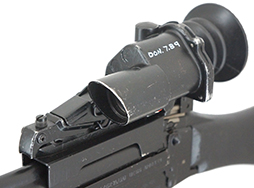 付属のSUIT L2A2サイトは、多少の使用感が見受けられ、打ち傷や擦れ、仕上げの剥落が見受けられますが、銃本体への取り付け自体は問題なく、サイト内の視野にわずかに曇りは見られるものの、大きな破損等は見受けられません。 一方、スコープ基部に若干ぐらつきが見られます。 尚、ラバー・アイ・ピースはしっかりとした弾力を残しています。
