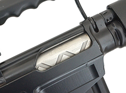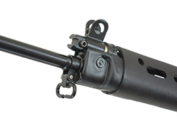 本品の銃身や機関部といった金属部は、小傷はわずかで黒色の焼付塗装仕上げが大変鮮やかに残っています。 樹脂製のハンドガードやグリップ、バット・ストックについても、打ち傷や擦れなど目立った損傷は見られず、各部の取り付けについても現状目立ったがたつき等は見られません。 セレクター・レバーの操作についても問題なく、安全位置でトリガーがロックされます。 リア・サイトの調節機能は問題ありません。 付属のマガジンについては、本体とコンディションが揃っており、表面処理が綺麗の残ったしっかりとした状態が保たれています。 尚、マガジン・スプリングは入っています。