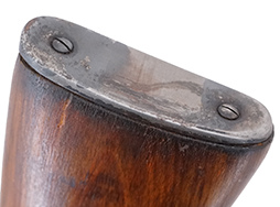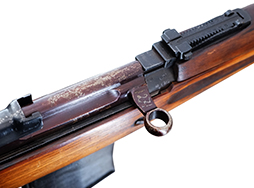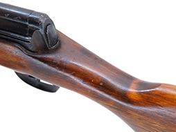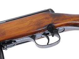 本品は全体に適度に使い込まれたコンディションとなっており、機関部や銃身といった金属部はやや打ち傷や擦れ、経年による褪色の他、一部仕上げが落ちて金属の地肌が表れている箇所や若干の表面錆痕等が見られますが、全体としては大きな欠損等は見受けられません。 ボルト・キャリア周辺やバット・プレートがやや錆によって地金っぽくなっているのが目立ちますが、経年を鑑みれば十分良い状態と言えます。 木製の銃床についても、細かな打ち傷や線傷が見られる他、角の部分等に僅かに欠けが見られますが、こちらも目立った破損等は見受けられず、概ねしっかりとした状態が保たれています。 アッパー・ハンドガードはがたつき無く固定されています。 リア・スリング・スイベルの基部周辺に補修痕が見られます。 リア・サイトの調整やマガジンの着脱については問題なく行う事が可能です。 付属のマガジンについは本体とコンディションが揃っている印象で、多少の打ち傷や擦れ、若干の表面錆が見られるものの、現状目立った凹みや変形等は見受けられません。